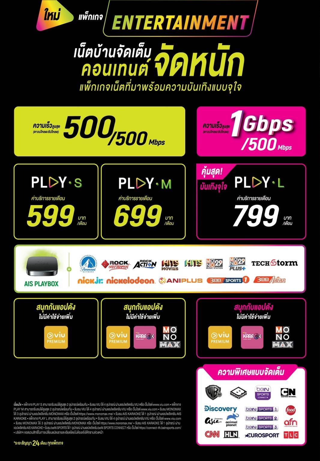 ความเร็วสูงสุด 500/500 Mbps เดือนละ 599 บาท