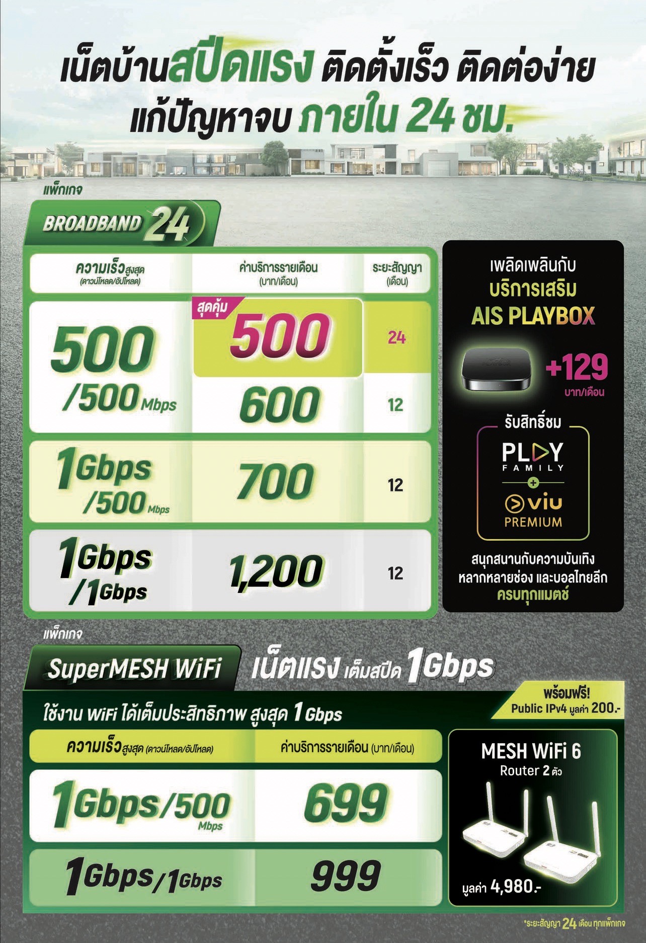 ใหม่!! เน็ตบ้านสปีดแรง ติดตั้งเร็ว ติดต่อง่าย แก้ปัญหาจบภายใน 24 ชม. เดือนละ 500 บาท